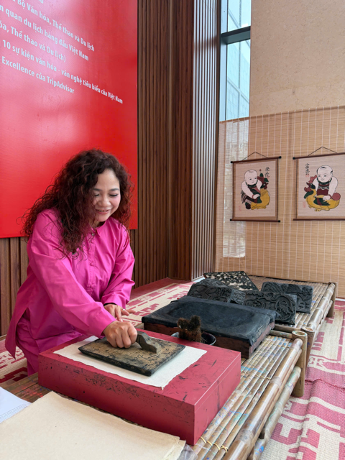 Một điểm nhấn thu hút đông đảo người tham gia là góc trải nghiệm in tranh Đông Hồ. Tại đây, các nữ viên chức và người lao động đã trực tiếp thử sức với kỹ thuật in tranh dân gian để tạo nên những bức tranh hoàn chỉnh. Những bức tranh sau khi in được Bảo tàng gửi tặng như món quà nhỏ nhưng giàu ý nghĩa, góp phần lan tỏa vẻ đẹp của dòng tranh dân gian truyền thống.
