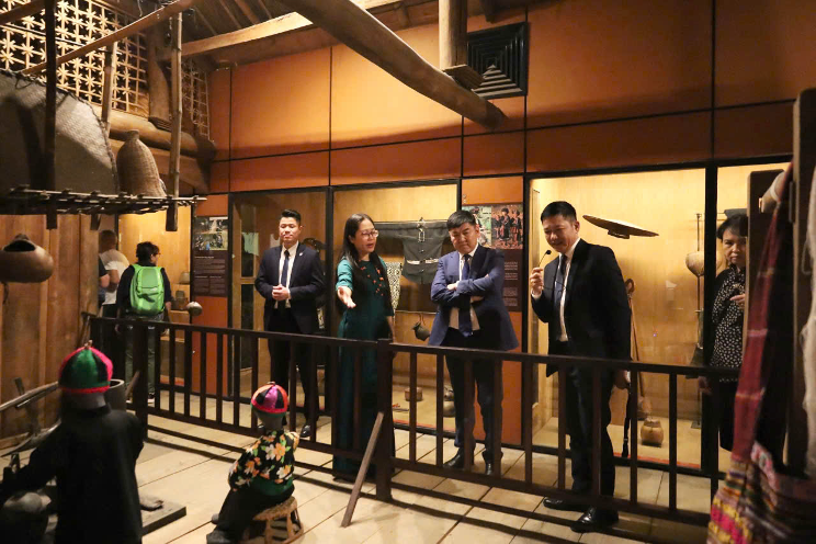 Tại Bảo tàng, Đoàn đã tham quan tòa Trống đồng - không gian trưng bày giới thiệu về văn hóa của 54 dân tộc Việt Nam, nơi thể hiện những nét đặc trưng về đời sống, phong tục tập quán, trang phục, tín ngưỡng và sinh hoạt cộng đồng của các tộc người. Đoàn cũng tham quan Vườn Kiến trúc dân gian, tìm hiểu các công trình kiến trúc tiêu biểu của nhiều vùng khác nhau ở Việt Nam, qua đó có thêm những trải nghiệm trực quan và sinh động về sự đa dạng văn hóa của các cộng đồng cư dân trên mảnh đất hình chữ S.