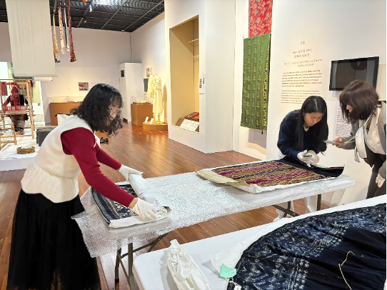 Với khoảng cách địa lý giữa Hà Nội và Busan, để đảm bảo an toàn tối đa cho hiện vật, việc đóng gói, vận chuyển, tháo dỡ và sắp đặt hiện vật đòi hỏi sự hiểu biết sâu sắc về chất liệu, môi trường và khả năng kiểm soát những rủi ro tiềm ẩn. Hiện vật chất liệu sợi (có nguồn gốc từ động vật và thực vật) thường rất nhạy cảm với ánh sáng, độ ẩm, nhiệt độ và tác động cơ học trong quá trình di chuyển. Vì vậy, mọi khâu thực hiện đều phải ưu tiên tuyệt đối tính an toàn và ổn định của hiện vật.