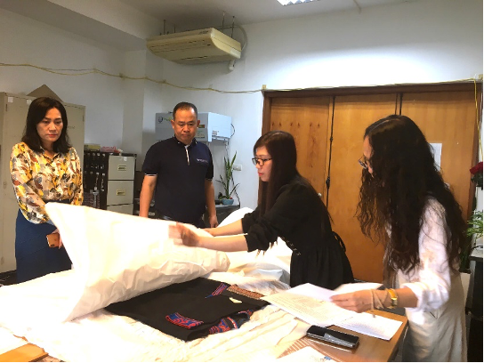 Hiện vật được vận chuyển bằng đường hàng không để đảm bảo thời gian nhanh nhất. Một cán bộ bảo quản của Bảo tàng Dân tộc học Việt Nam đi cùng để kiểm soát tình trạng của hiện vật sau vận chuyển và phối hợp với các cán bộ nghiên cứu của Trung tâm Văn hóa ASEAN (Hàn Quốc) sắp đặt hiện vật vào vị trí trưng bày. Đây là khâu cuối cùng nhưng mang tính quyết định đối với cả yếu tố thẩm mỹ và an toàn. Đồng thời, hệ thống ánh sáng cũng được điều chỉnh ở mức phù hợp để hạn chế tối đa sự phai màu, đặc biệt với các loại vải nhuộm tự nhiên, trong suốt thời gian trưng bày.