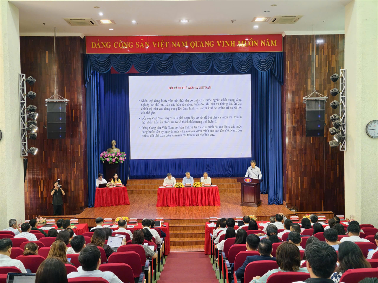 Đoàn chủ trì hội thảo gồm có Đồng chí Ngô Đông Hải - Ủy viên Ban chấp hành Trung ương Đảng, Phó Trưởng Ban Tuyên giáo và Dân vận Trung ương; Đồng chí Lê Văn Lợi - Ủy viên Ban chấp hành Trung ương Đảng, Chủ tịch Viện Hàn lâm Khoa học xã hội Việt Nam; Đồng chí Trần Cao Vinh - Ủy viên Ban Thường vụ Đảng ủy, Phó Giám đốc Đại học quốc gia TP. Hồ Chí Minh.